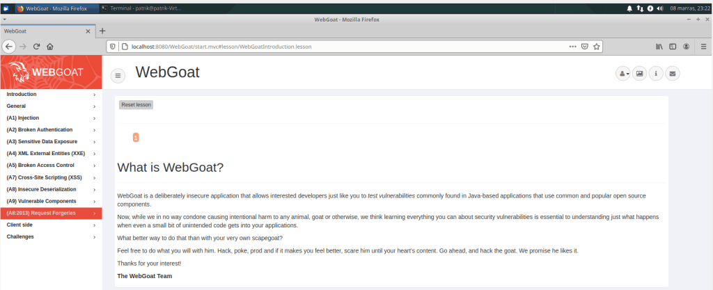 http://terokarvinen.com/2020/install-webgoat-web-pentest-practice-target/
