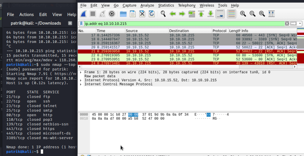 - 2. sudo nmap –top-ports 10 -sS 10.10.10.215