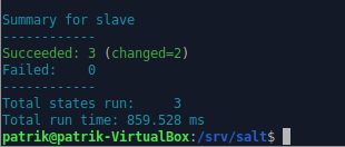 2. sudo salt '*' state.apply teksti --> tila onnistui
