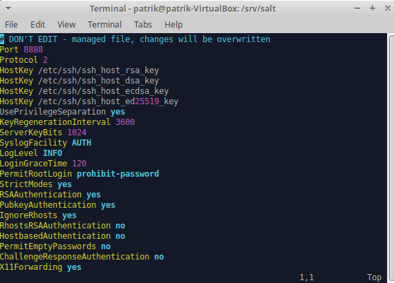 3.Loin config-tiedoston samaan hakemistoon --> sudo vim /srv/salt/sshd_config