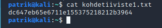 - tarkistetaan vielä, että MD5 -tiiviste on luotu –> cat kohdetiiviste1.txt