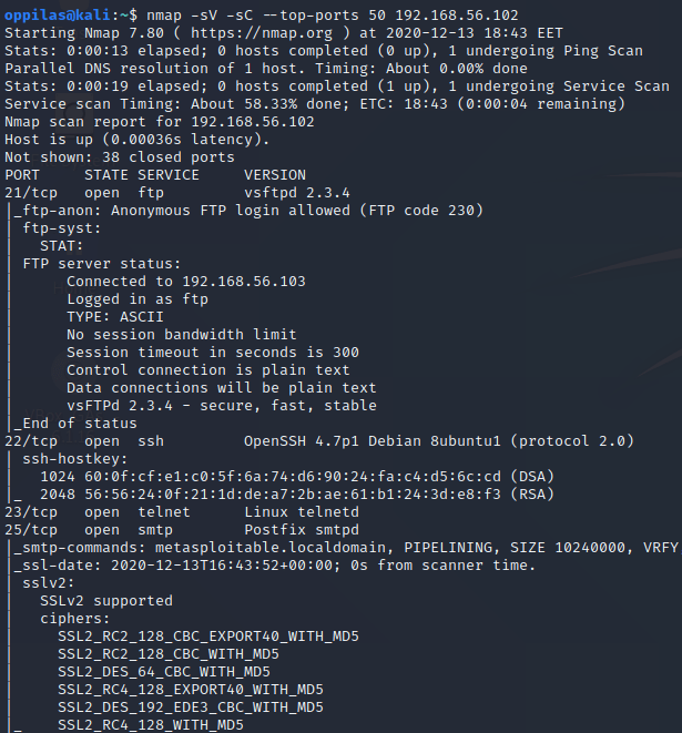 - nmap -sV -sC –top-ports 50 192.168.56.102