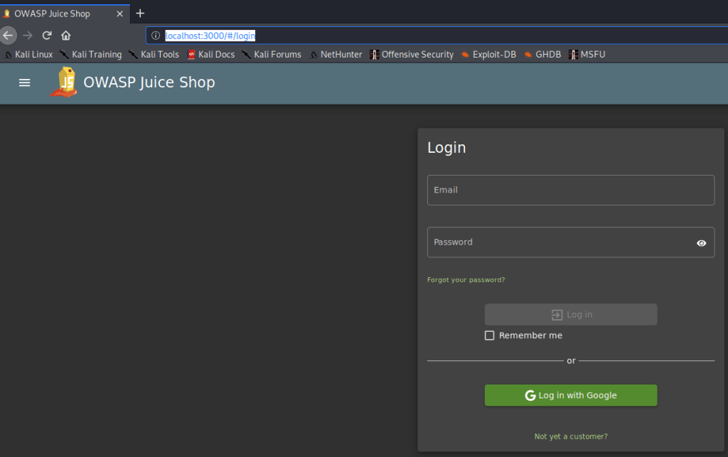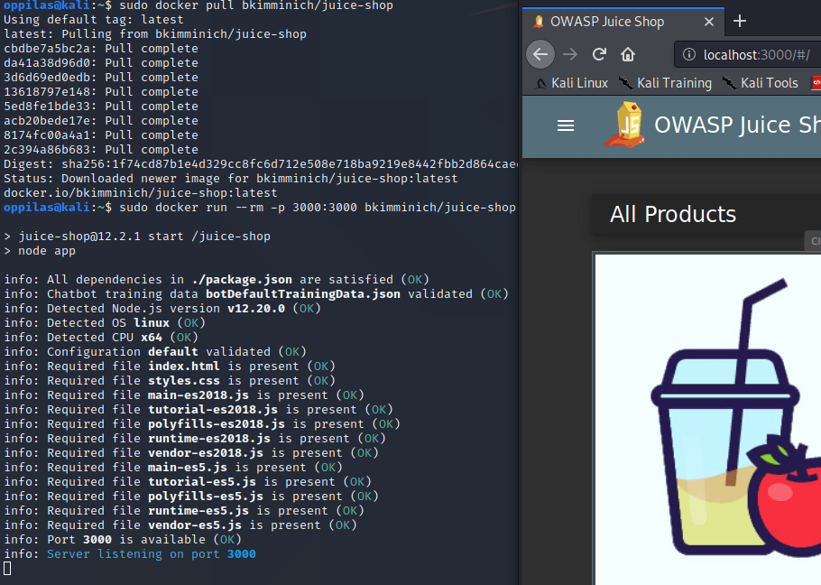 - docker run–rm -p 3000:3000 bkimminich/juice-shop