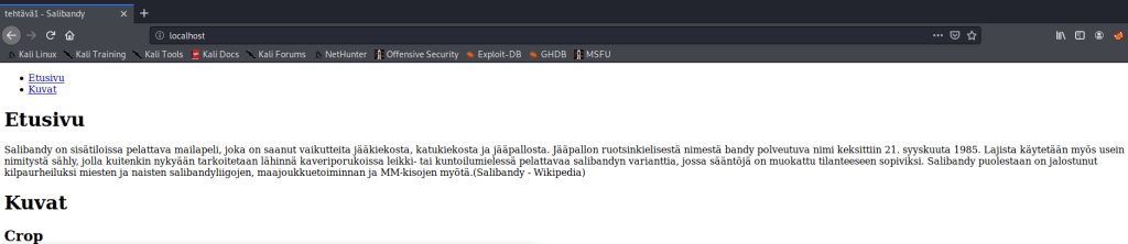 - Muokkasin sivustot aikaisemmin tekemääni Salibandy -aiheiseen sisältöön.